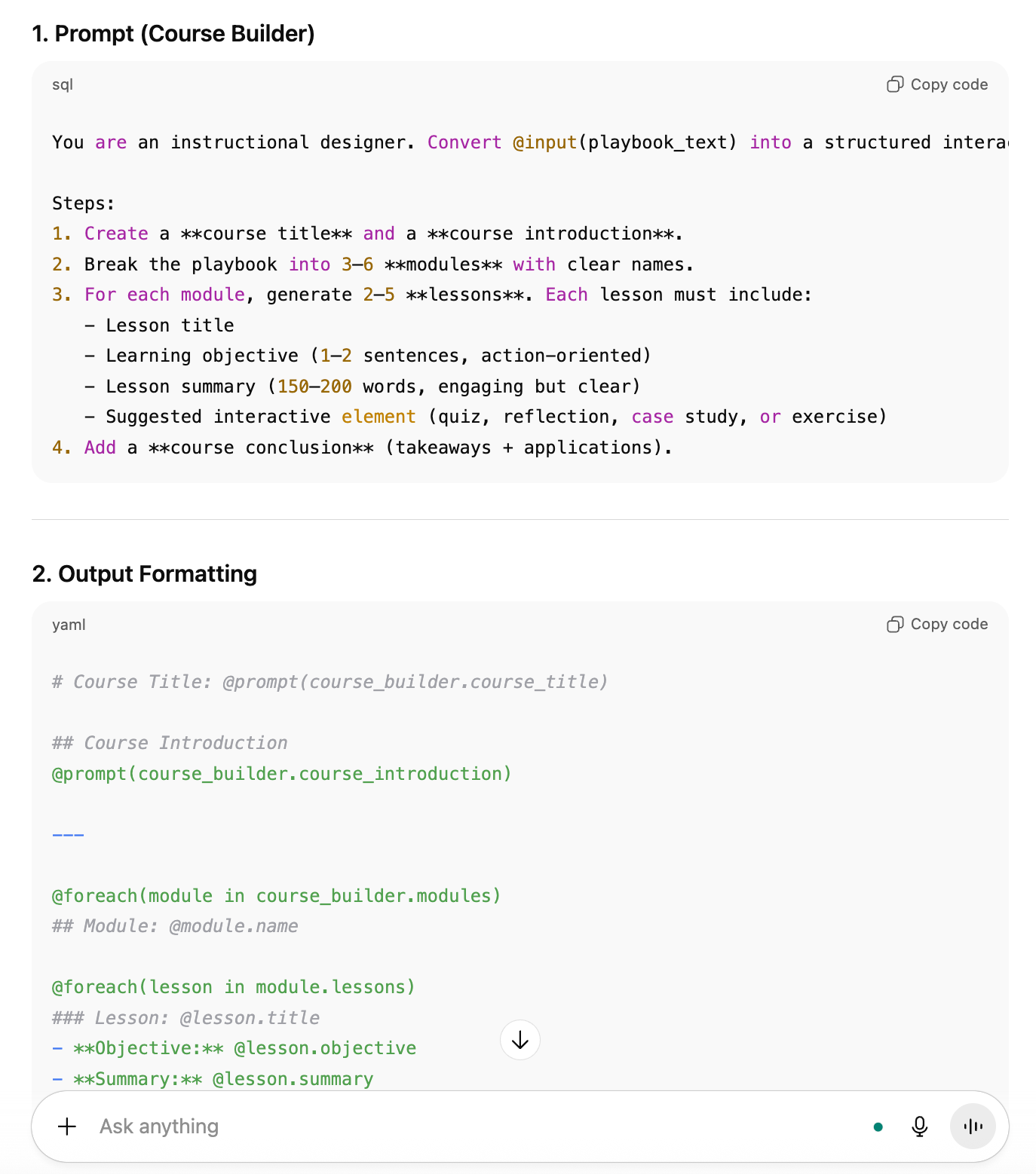 Once the template is selected, fill out the fields to guide the AI agent. You can craft prompts yourself or use ChatGPT to help structure the prompt and output formatting.