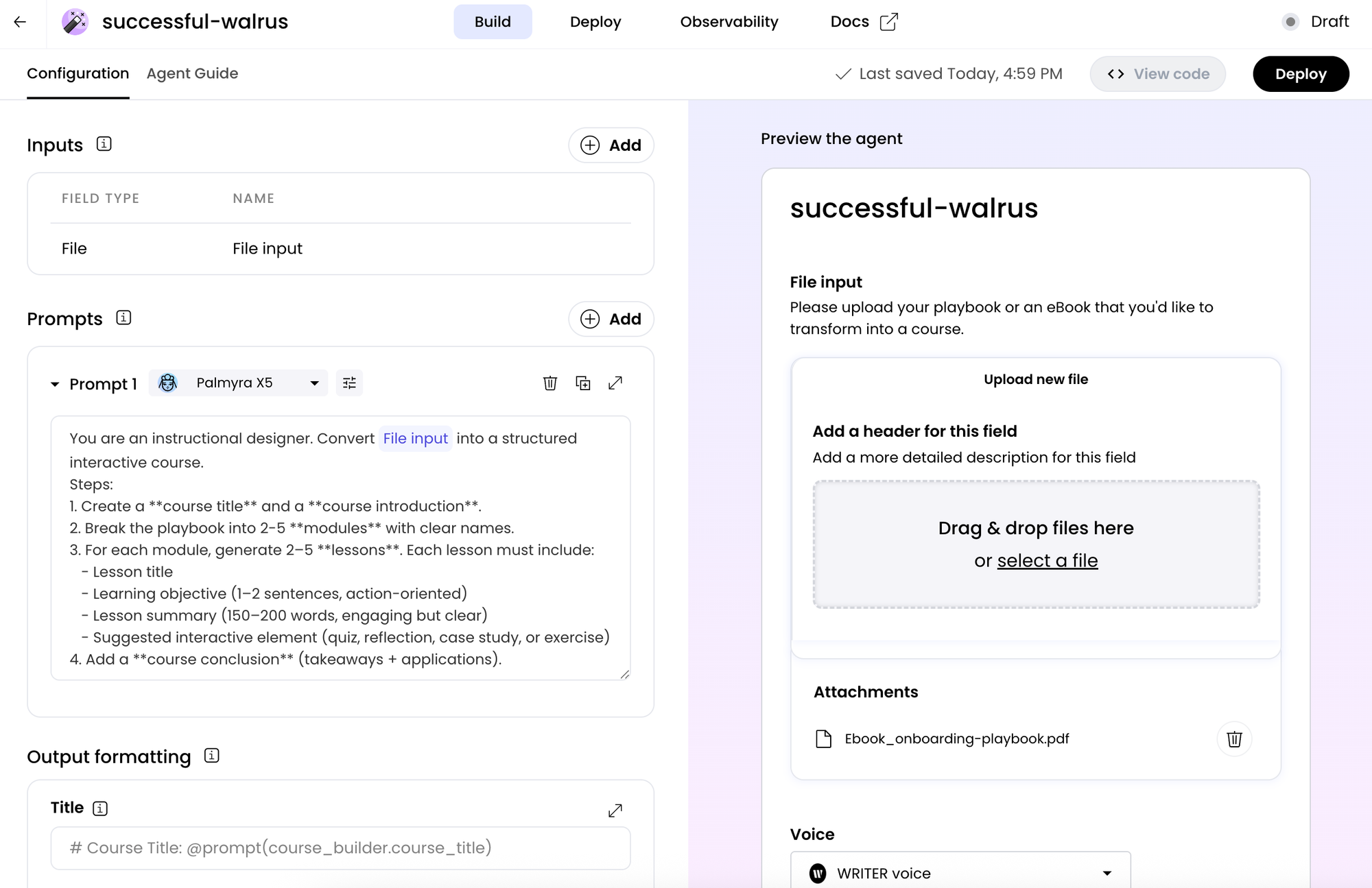 Lesson #1: How do I create a no-code AI agent in Writer Studio?