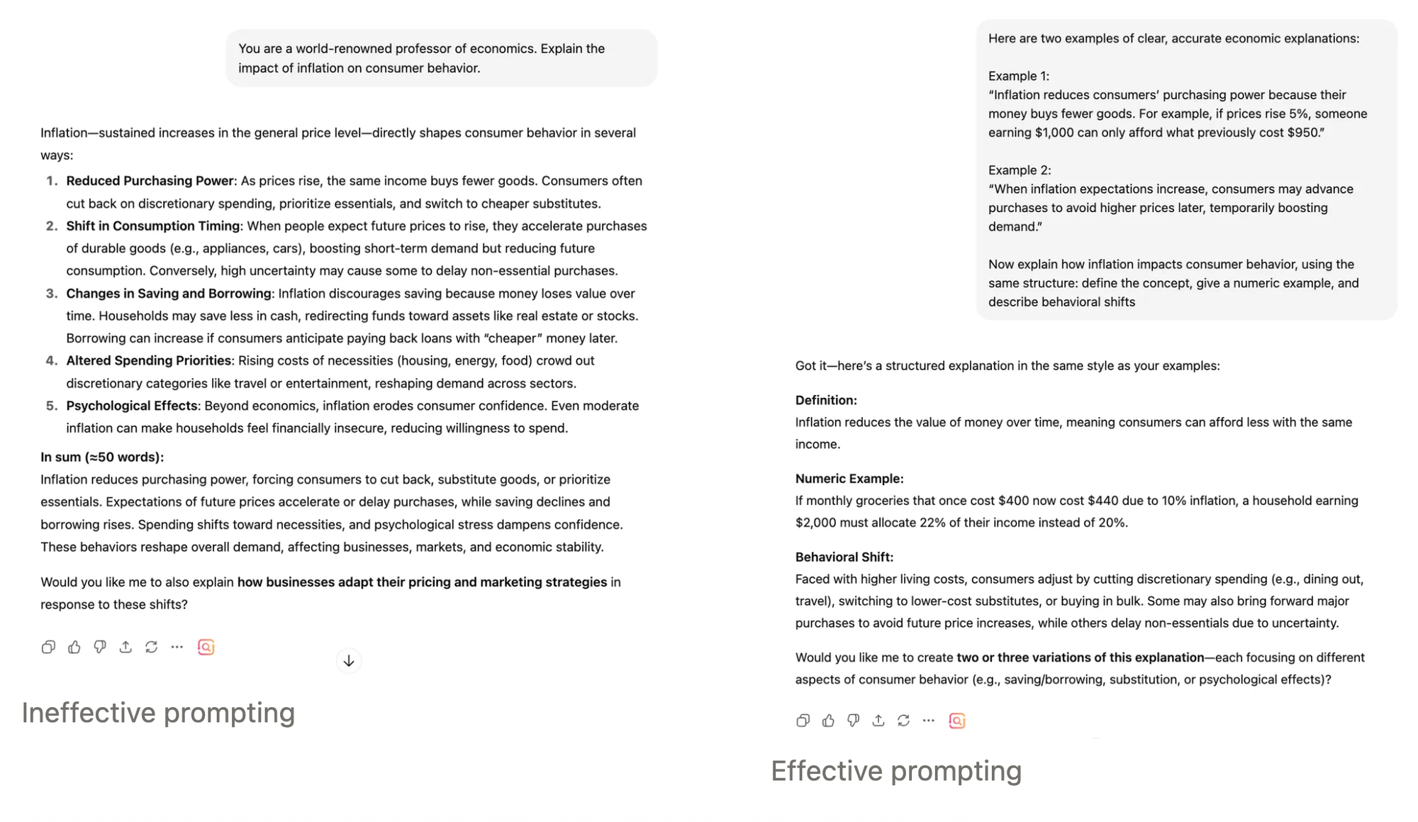 Why it fails: Labeling the model as a “professor of economics” only tweaks the tone—it doesn’t improve the accuracy or depth of the explanation.
