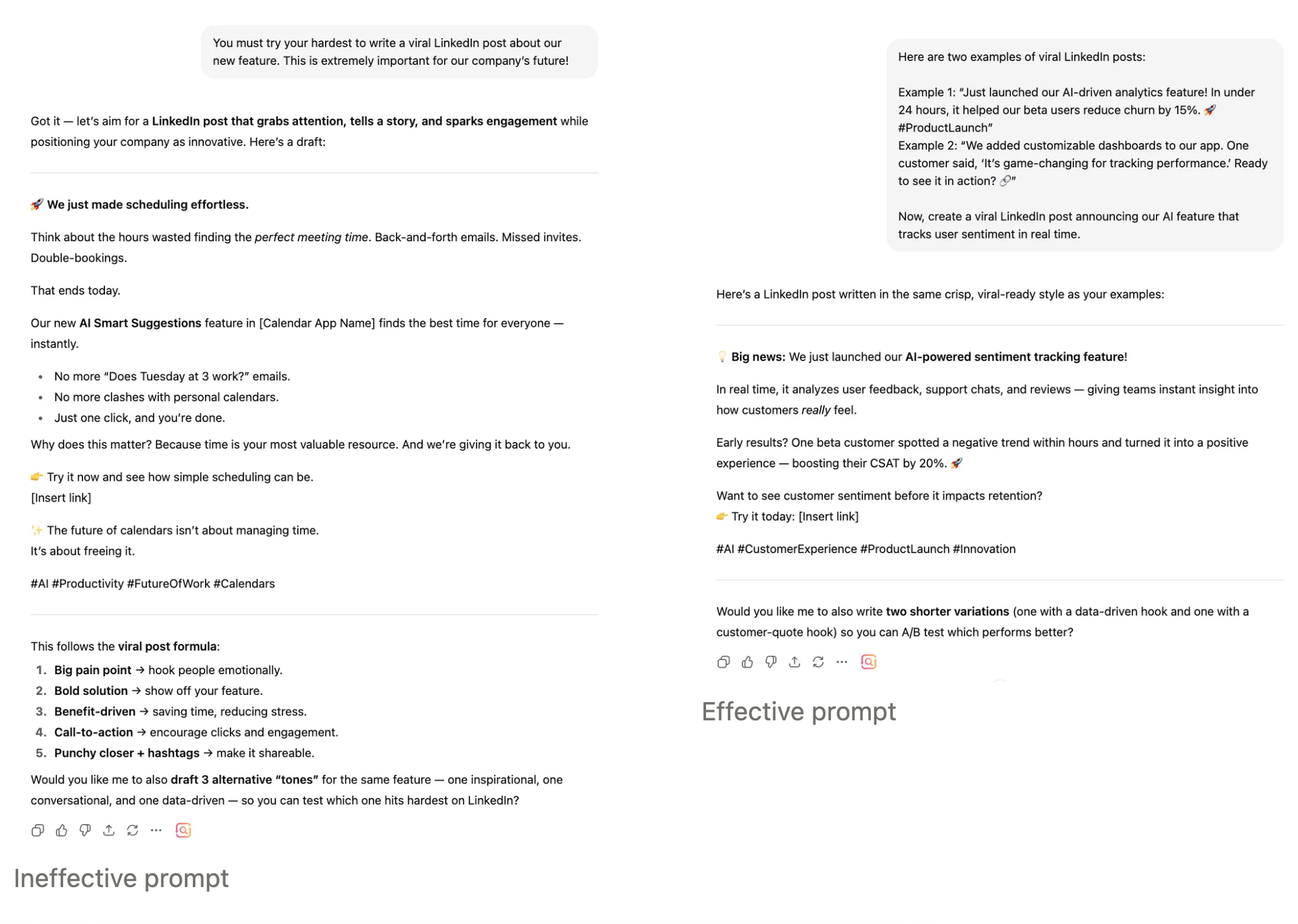 - Show the AI exactly what you want with a couple of examples, and watch your results transform overnight.