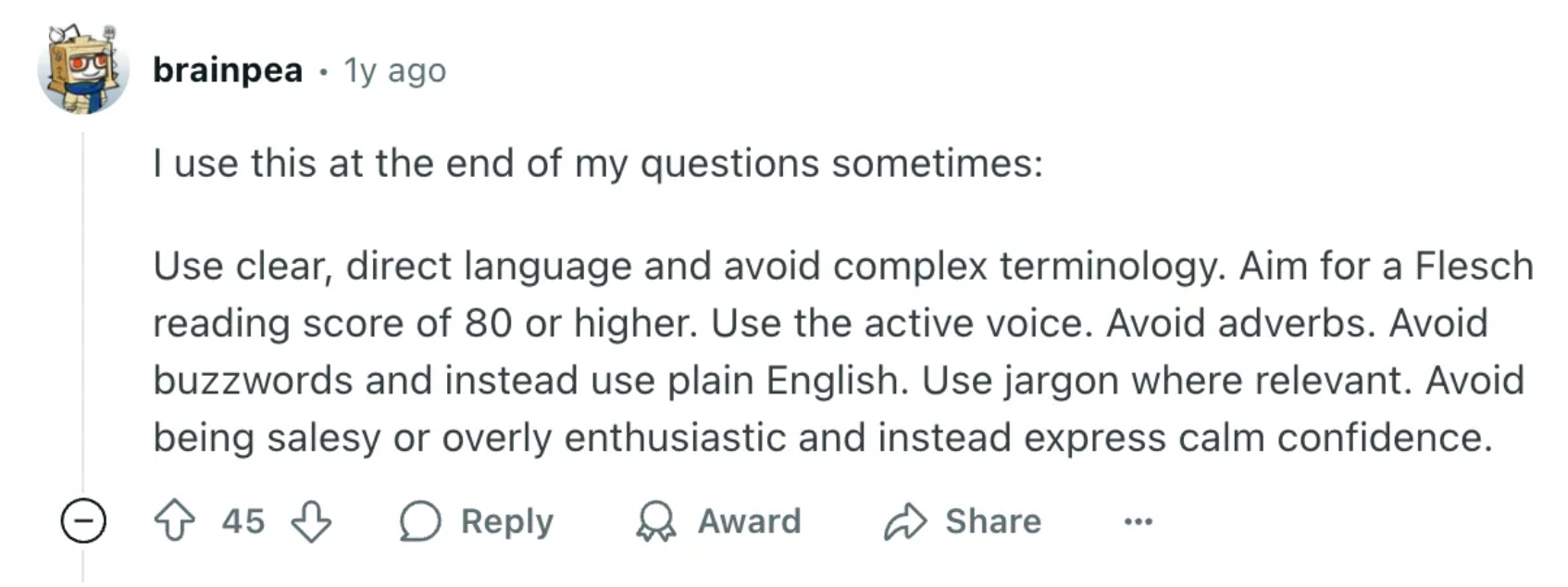 Tip #1: Use active voice. Avoid adverbs and buzzwords and use plain English.