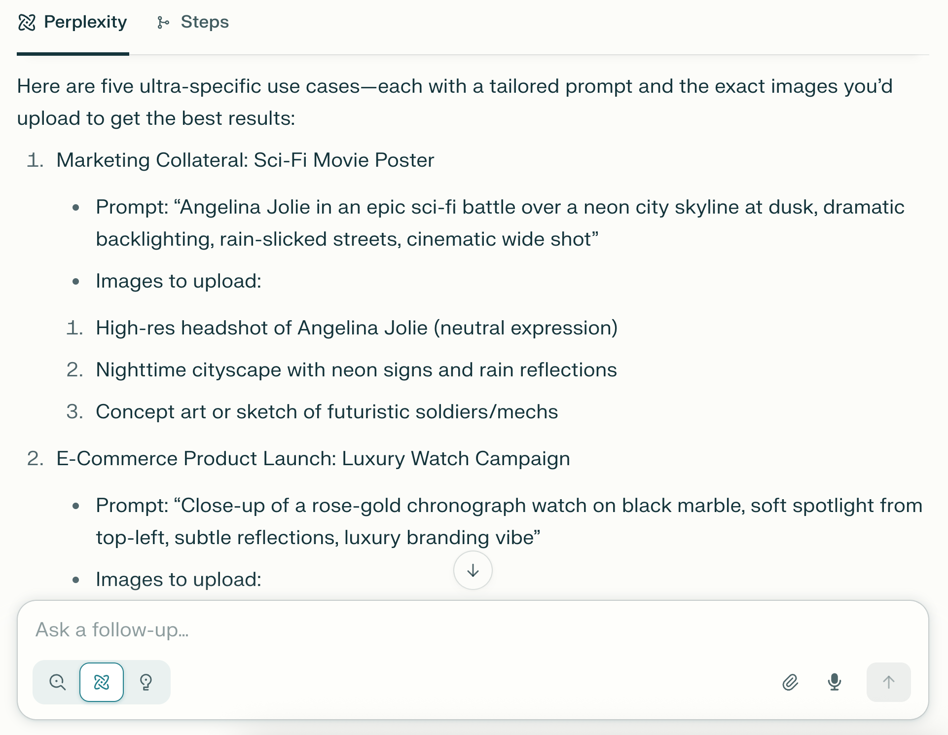 I asked Perplexity to provide us with use case samples that include a prompt and images. I searched the images using Google.